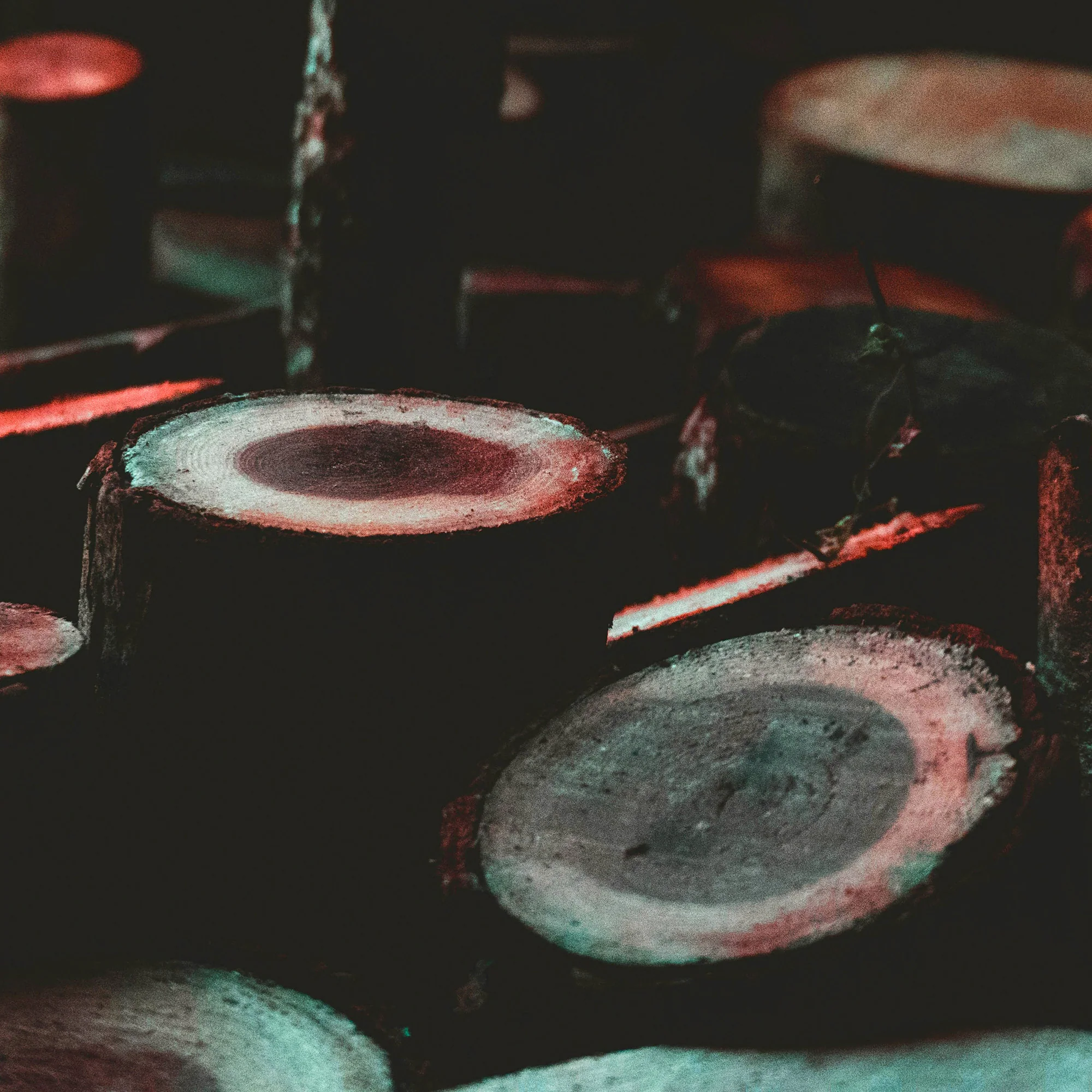 A charred cedar log rests on a black iron frame inside a speckled stone hearth, while tall white walls and fluted millwork rise from creaky, bleached wood floors.